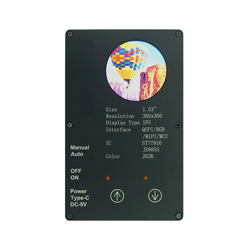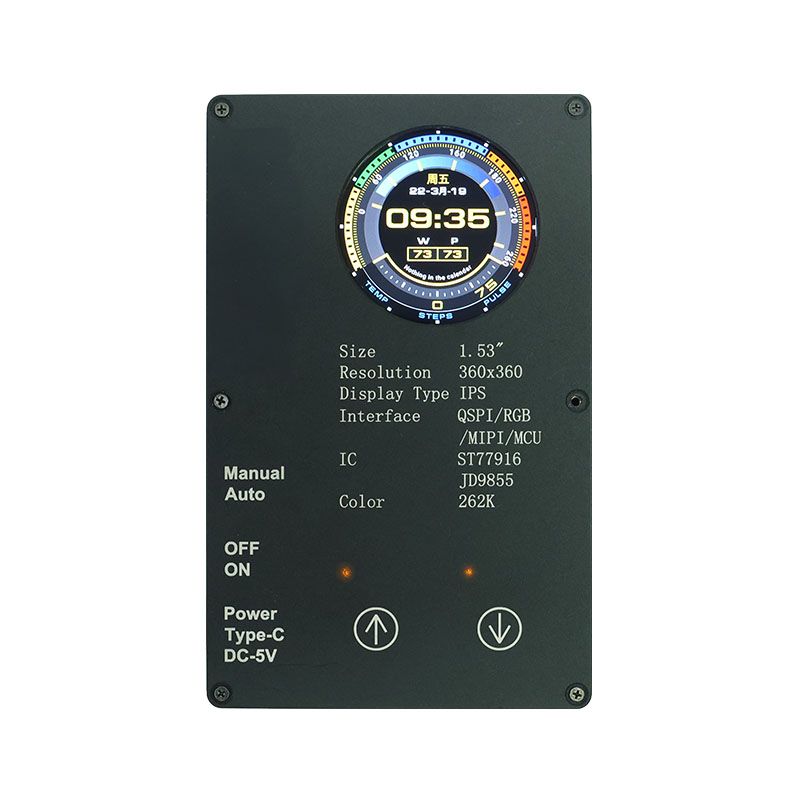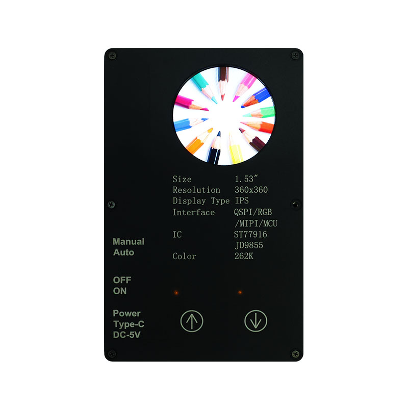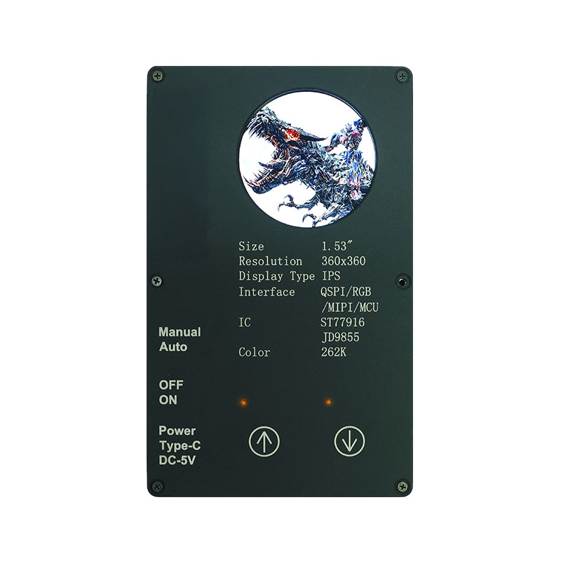 تتميز هذه الشاشة المخصصة بدقة عالية تبلغ 360 × 360 وزوايا رؤية شاملة وسطوع عالي يبلغ 400 شمعة/م2. مع نطاق درجة حرارة التشغيل الصناعية (-20 درجة مئوية ~ 70 درجة مئوية)، فإنه يضمن أداءً واضحًا ومستقرًا في التطبيقات المنزلية الذكية مثل أجهزة إزالة العث والعصارات. تتيح واجهة QSPI وST77916 Drive IC نقل البيانات بسرعة عالية، في حين أن حجم الوحدة المدمجة (40.46×41.96×2.16 ملم) يزيد من كفاءة المساحة.