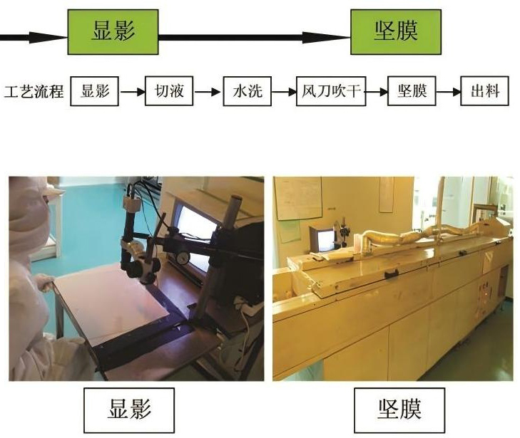 تتم معالجة السطح الزجاجي بمطور لإزالة مقاوم الضوء المكشوف والمتحلل. في هذه المرحلة، يصبح نمط القطب الكهربائي المصمم مرئيًا لأول مرة على شكل مقاوم الضوء المتبقي، مما يكشف عن الخطوط العريضة للنمط.