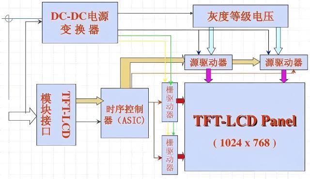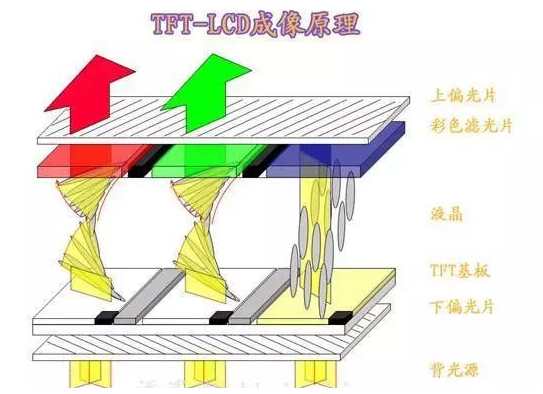 في المقابل، تقوم شاشة TFT (ترانزستور الأغشية الرقيقة) LCD بتعيين مضيف مخصص لكل بكسل. هذه هي بنيتها الأساسية: قيادة المصفوفة النشطة.